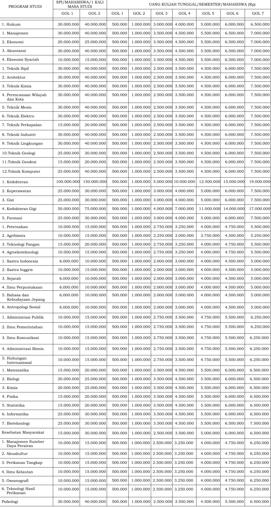 Biaya Kuliah Undip 2021 / 1 / Rp 5.000.000 · golongan v: .